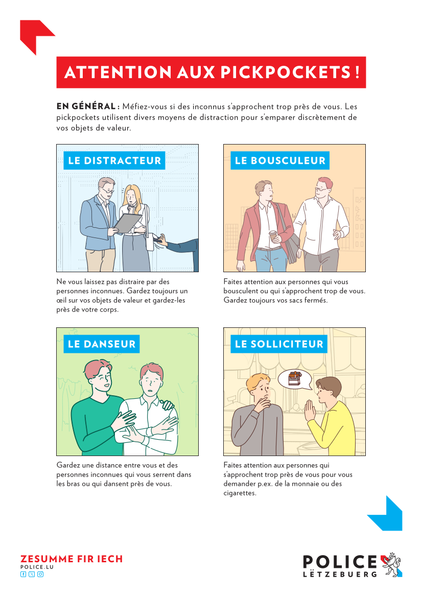 En cas de besoin, les visiteurs des marchés sont invités à s’adresser aux agents. Ces derniers distribueront d’ailleurs des flyers expliquant comment se prémunir au mieux contre les pickpockets.