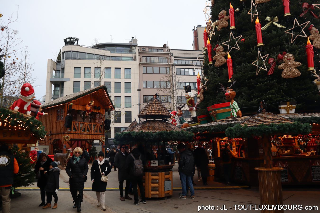 - Lëtzebuerger Chrëschtmaart (place d’Armes) : 38 chalets, un grand sapin de 12 m et la crèche du kiosque